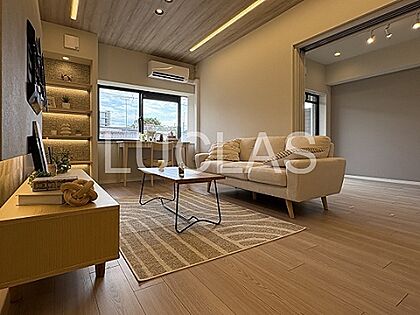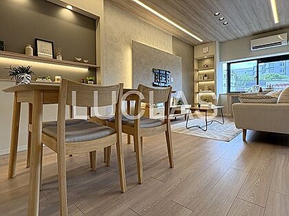ウォルナット調の床面が高級感と安らぎを演出。くつろぎと憩いの空間。