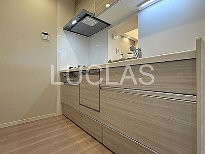 3口コンロで使い易い仕様。毎日のお料理が楽しくなりますね♪収納力も魅力的!食洗器も付いてます♪
