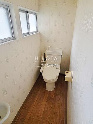 温水洗浄便座付きが嬉しいトイレです。手洗い器も別でついています。