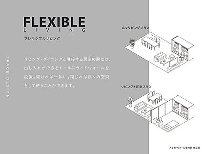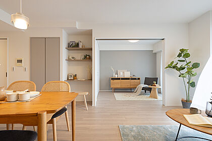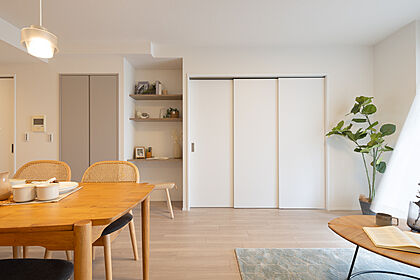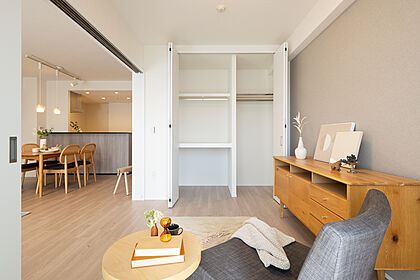 リビングと洋室の間に設けたスライドウォールを開け締めするだけで、部屋の使い方が変えられます。