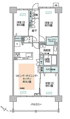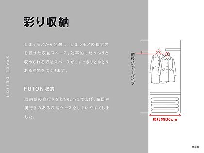 奥行きを広げたFUTON収納は、布団や奥行きのある収納ケースもすっきり収納。
