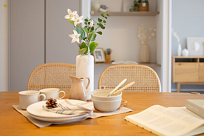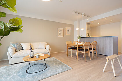 明るい光が差し込むリビングダイニング。