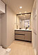 洗面ボウルをサイドに寄せた設計で、化粧品や小物の置き場所を確保。