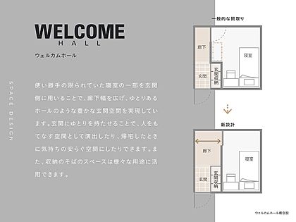 使い勝手の限られていた洋室の一部を活用することで玄関幅を広げ、ゆとりのあるホール空間を確保しました。