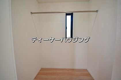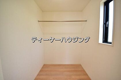 お子様も思わずかくれんぼしたくなる程広々としたWICです。ズラ〜リと洋服が掛けられちゃいます。