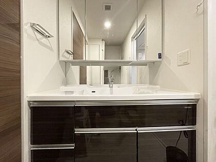 清潔感溢れるスタイリッシュなデザインの洗面化粧台♪小物収納も豊富です!