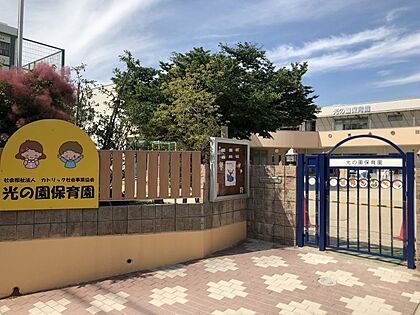 光の園保育園まで 234m 徒歩約3分●モンテッソーリ教育を人間教育の土台として取り組んでいます。福岡市の保存樹として指定を受けた桜の木が園児たちの成長を見守っています。