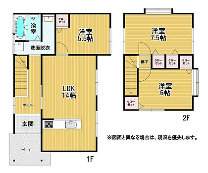 洋室は5.5帖〜7.5帖と使いやすい広さです