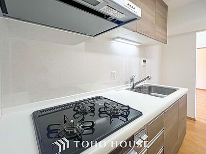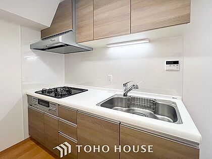 お手入れのしやすいすっきりしたシステムキッチンを採用しました。