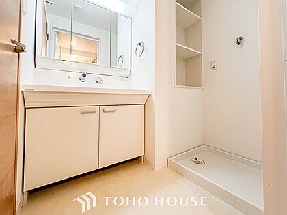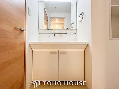 洗面台・洗面所パウダールームはナチュラルな雰囲気で清潔な印象。