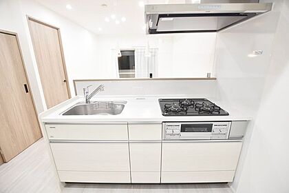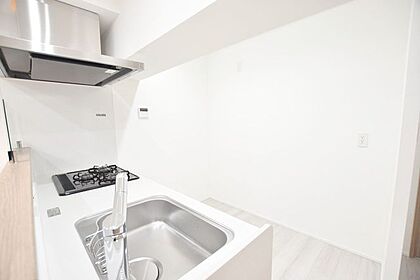 冷蔵庫や食器棚を配置できるスペースが確保されており、日々の調理や片付けもスムーズ。シンプルながらも機能的な設計で、暮らしに寄り添うキッチンです。