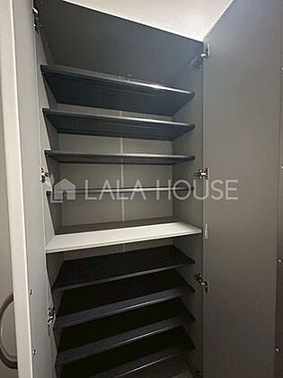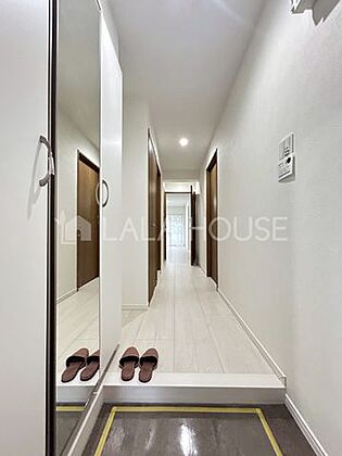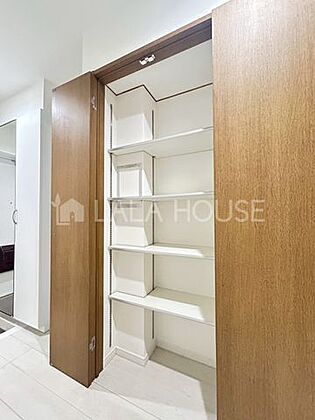 玄関廊下にある大型収納☆出掛ける時に必要なものも玄関前に収納できるので便利ですね♪