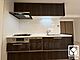 使いやすさとデザイン性を両立。落ち着いた木目調のデザインが魅力のシステムキッチンです。空間を有効活用できる壁付けタイプ。