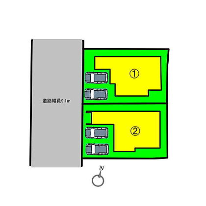 【接道】 一方 ( 公道 西 9.1m ) 【仲介手数料無料】で10年頑張っております。「ローン手数料」「物件調査費用」「火災保険の指定」などの費用はいただきません。  |