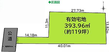 | 土地面積/坪(坪単価) | 393.96m2(登記簿)/119.38坪(108.90万円) | 代表的な接道 | 一方 公道 西 4m ※詳細は備考欄をご確認ください |