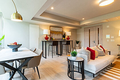 ※販売対象に家具・調度品は含まれません。大きな家具もゆとりをもって配置できる広さ。ホームパーティなども楽しめそうです。