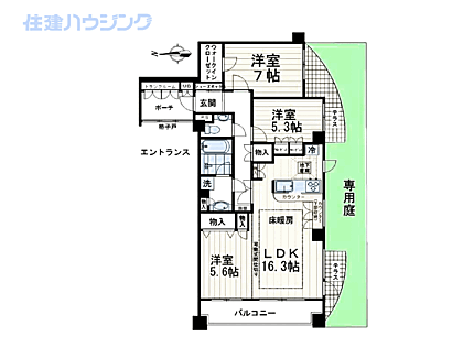 | 備考 | 南西角住戸、専用庭、玄関ポーチ、LDK15帖以上、床暖房、システムキッチン、浴室乾燥機、追焚機能、宅配ボックス、ペット相談 | ||