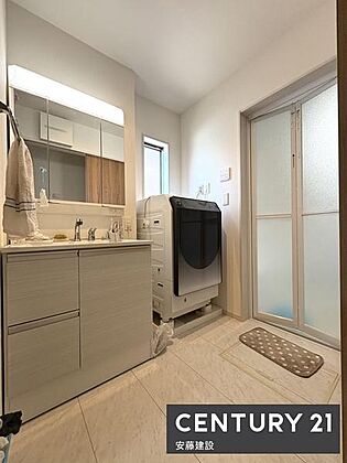 【 洗面所 / Washroom 】清潔感溢れる洗面所は忙しい朝もストレスフリーに身支度できそうな空間収納力のある三面鏡独立洗面台完備