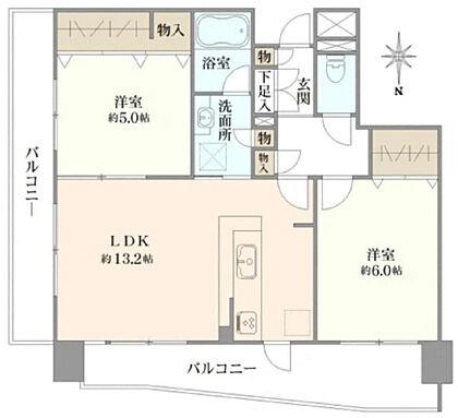 間取り 2LDK 専有面積 55.66m2(壁芯)