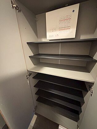 シュー時ボックス内部、棚は可動式なので、ヒールや長靴もしっかり入ります。