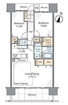 | 間取り | 2LDK | 専有面積 | 65.56m2(壁芯) |