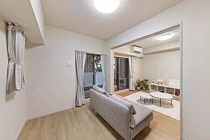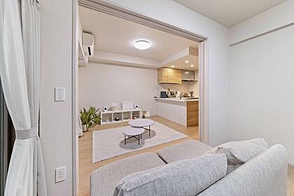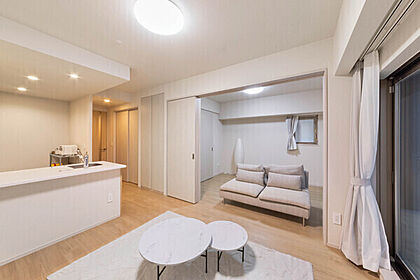 ※販売対象に家具・調度品は含まれません。LDKに隣接した約6帖の洋室の戸を開放すると、17帖超の広々空間として利用可能。