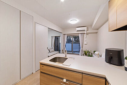 ※販売対象に家具・調度品は含まれません。料理をしながら、LDを見渡せる対面式キッチン。家事動線に配慮されたL字型です。