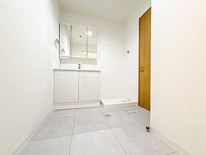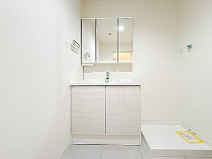 •  【ランドリースペース】毎日使う洗濯機。しっかりと奥行きのある置き場が確保されています。