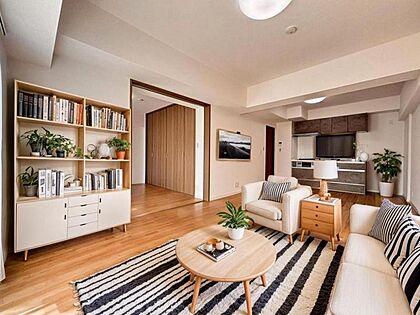 (配置してある家具はCGによるイメージです)くつろげるリビングは話に夢中になりすぎて、ついつい時間を忘れてしまう。そんな束の間の幸せを感じさせてくれる場所です。(2025.9.16撮影)