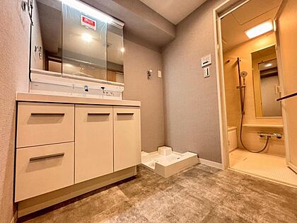 清潔感のあるワイドな洗面台は収納力もあり、いつでもすっきりとした洗面室に。(2025.9.16撮影)