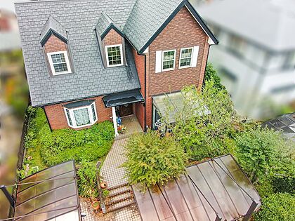 まるで絵本の中のお家のようなオシャレな外観♪南東側には広々としたお庭がございます♪