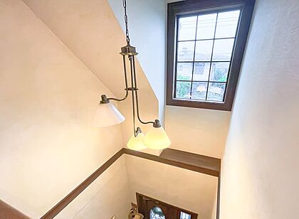 玄関上部は吹き抜けになっており、上から差し込む光で開放的な空間です。