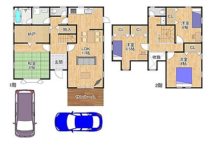 お車2台分のカースペースがございます!前面道路は広々6.5mですのでお車の運転が苦手な方でも安心です