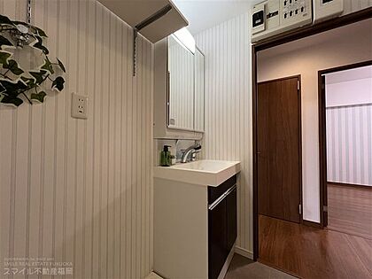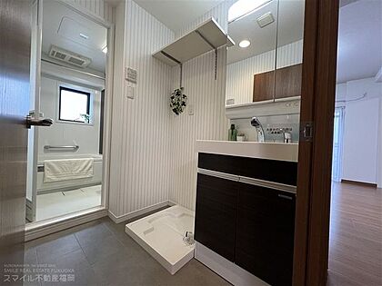 *洗面脱衣室*シャワー付洗面化粧台♪洗髪や手洗い洗濯に加え、洗面台のお掃除もしやすくとても便利です♪室内洗濯機置場は十分なスペースを確保♪