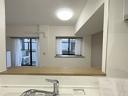 カウンターキッチンは、キッチン側とリビング側に分かれてお店間隔でのお食事も可能!! お休みの日には、いろいろな楽しみ方を家族みんなでお楽しみください