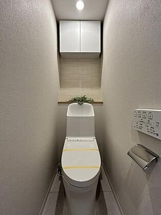 ウォシュレット一体型トイレ・上部吊戸棚収納