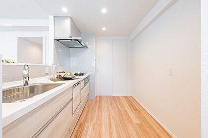 洗面化粧室は、廊下側とキッチン側からアプローチできる2WAYタイプ
