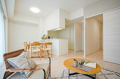 約14.8帖のLDK。LD部分に床暖房が設置されているため、乾燥しにくく快適な室温を保てます。