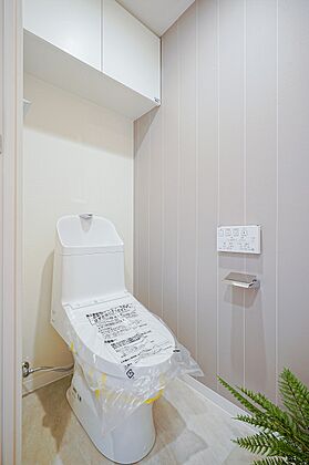 上部に吊り戸棚があるので、トイレットペーパーのストックや掃除用品を収納できます。