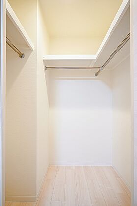 ウォークインクロゼットにはハンガーパイプと枕棚があり、衣類や小物を分類して仕舞えます。