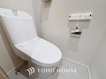 「ウォシュレット機能付き」優れた節水効果や汚れが付きにくい便座など、ほしかった機能が揃ったウォシュレット一体型トイレです。収納に便利な吊戸棚を備え付けています。