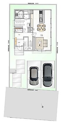 ■参考プラン(配置図) ・3LDK+ランドリースペース ・建物価格:2344万円(税込) ・延床面積:107.64平米(32.55坪)