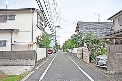 物件の西側前面道路(南側から)[2025年10月4日撮影]