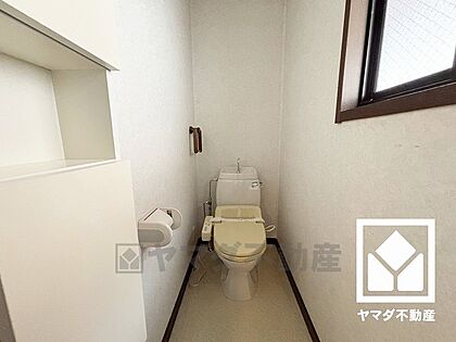 明るく清潔感溢れるトイレです。温水洗浄便座付きで、季節を問わずいつでも温かい便座をお使いいただけます。