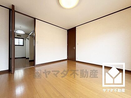 約8帖の2階洋室です。大きなウォークインクローゼット付きで整理整頓しやすいです。