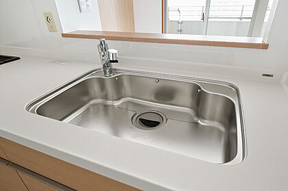 家事がしやすいゆとりのあるワークトップが設けられています。ステンレス製シンクが備わっています。【ステンレス製シンク】
