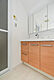 三面鏡の裏には化粧品など細かい物が収納可能。ボウル下には、洗剤などのストックが収納できます。【洗面室】