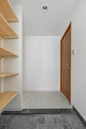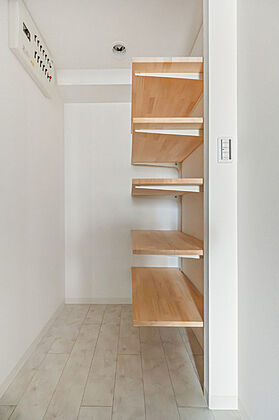 廊下に物入が備わり、ご家族共用の物や書類を収納するのに重宝します。豊富な収納が魅力の住まいです。【収納/廊下】
