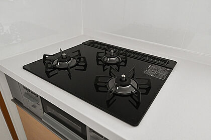キッチンには、グリル付き3口ガスコンロが搭載されています。複数の料理を同時に調理することができます。【グリル付き3口ガスコンロ】