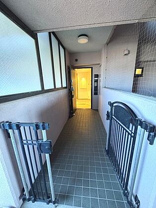 玄関アプローチにはゲートが設置されており安心の空間が広がっています。しっかりとしたタイル張りの床で清潔感があります。天井照明がしっかり照らしてくれるため夜間も安心です。